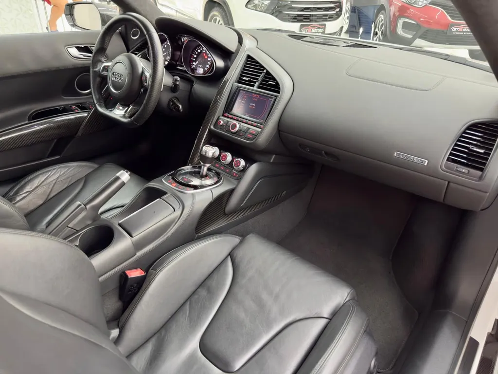 O interior é luxuoso e focado no motorista. Os bancos esportivos oferecem conforto e sustentação lateral. O painel combina materiais premium e tecnologia de ponta. Além disso, o cockpit é digital e ergonômico, com todos os comandos próximos ao condutor. O R8 transmite sensação de esportivo profissional desde o primeiro contato.
