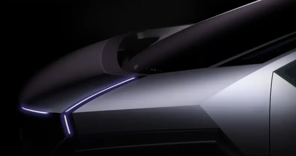 No nariz é onde encontramos nossa outra imagem teaser que foca na parte frontal de um estudo prateado. Suas lâmpadas são compostas por uma fina fileira horizontal de LEDs com dois LEDs inclinados disparando para cima e para dentro de cada farol para formar uma seta apontando para a frente do carro. Vemos um motivo semelhante nos ângulos agressivos das linhas da carroceria logo à frente de cada porta voltada para a frente. Nosso palpite é que este carro tem um capô extremamente curto e um pára-brisa bem inclinado que se estende muito além das soleiras das portas dianteiras.